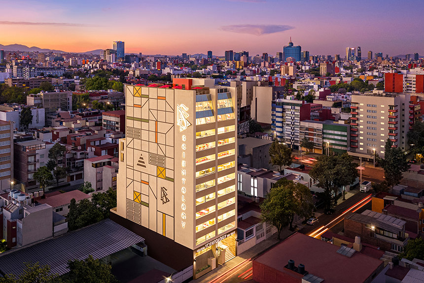 Mexico Citys nattehimmel lyser opp med innvielsen av Scientology Kirken for Del Valle