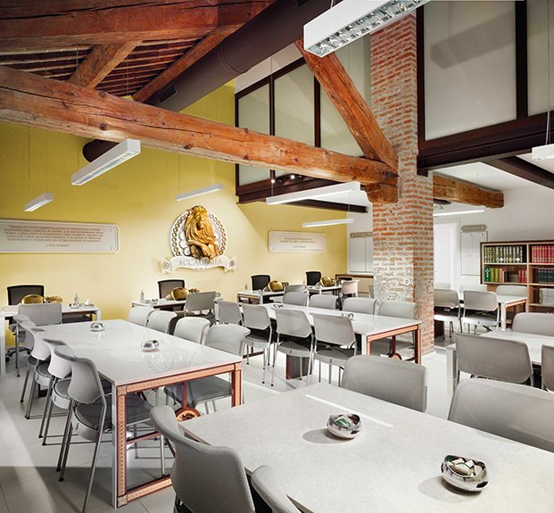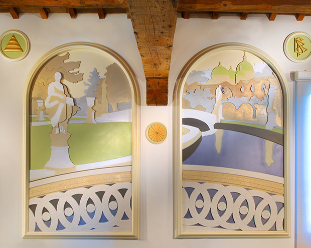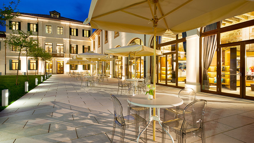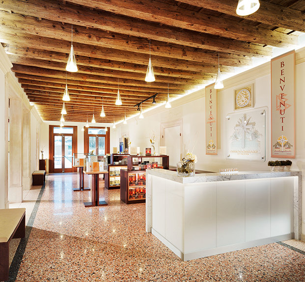 Kirken restaurerte landemerket, det 18. århundrets villa hvorfra den betjener Veneto-regionen.