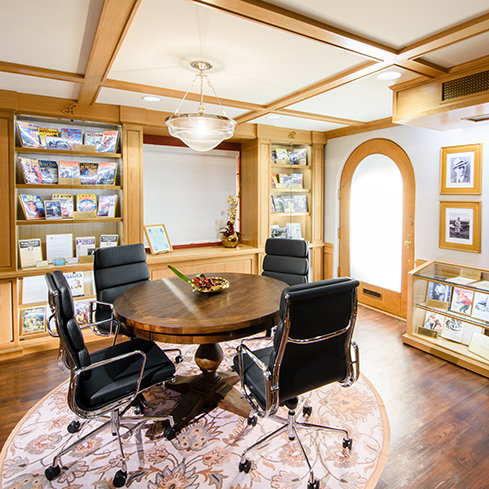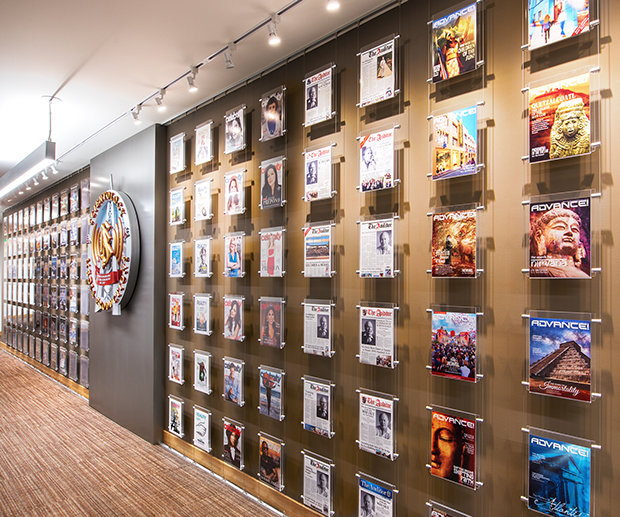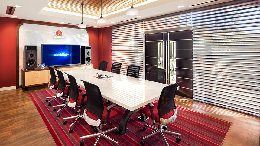 reflekterer skjæringspunktet mellom L. Ron Hubbards og filmstudioets historie. På veggene dens finnes plakattavlene fra kinoinnganger for filmene og seriene Hubbard skrev manuskriptet til for Hollywood.