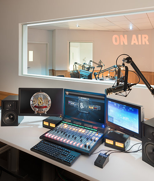 I filmstudioets sentrale administrasjons-fasilitet former Kirken sine budskap for kringkasting og forbereder dem for distribusjon gjennom tv, radio, podkaster og alle andre mediekanaler.
