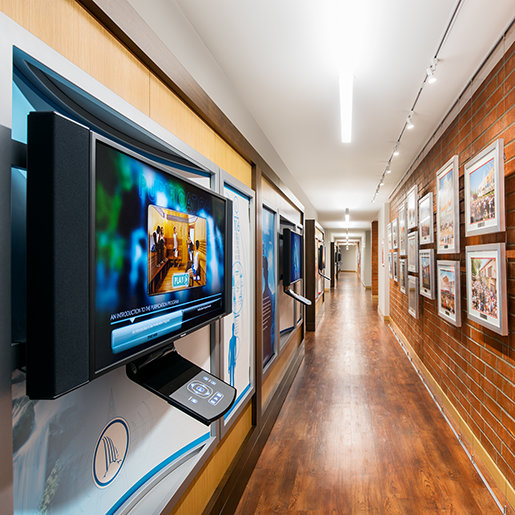 Filmstudioets historiske korridorer inneholder også kontorer og redigeringssuiter så kreative team kan arbeide sammen for å utvikle manuskripter og skape prosjekter av enhver art – herunder dokumentarfilmer om våre humanitære programmer, en kikk på innsiden av Scientology som en global bevegelse, og presentasjoner om livet og arven til grunnleggeren vår, L. Ron Hubbard.