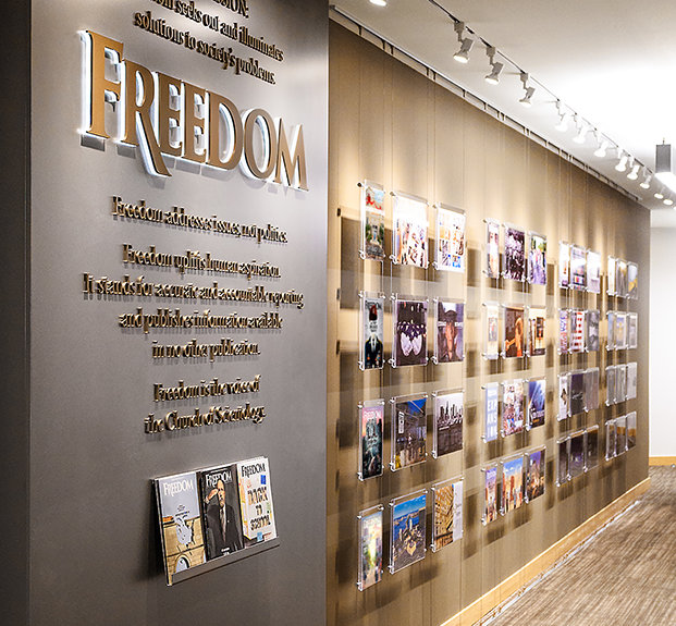løsninger på samfunnets problemer og hever menneskets ambisjoner. Freedom strekker seg nå videre forbi trykte medier til radio, tv og online.