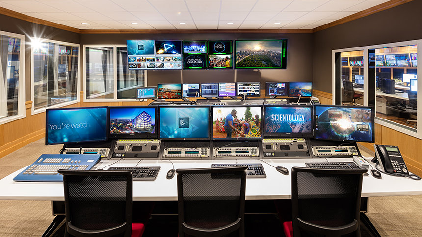 Hovedkontrollrommet er kringkastingsknutepunktet i Scientology Media Productions. Dette er det endelige utsendelsespunktet for utsendelsen av alle programmene til den nye Scientology-tv-kanalen.