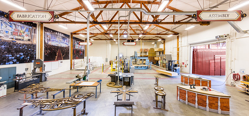 Sceneverkstedet holder til i det som var filmstudioets første innspillingsscene og er utstyrt med det nyeste høyteknologiske maskineriet til å bygge 3D-kulisser og -dekorasjoner.
