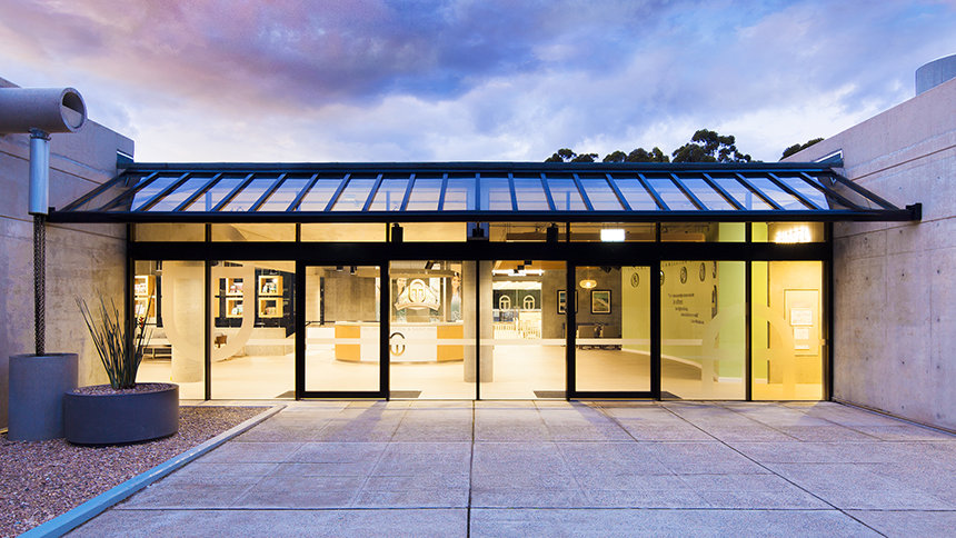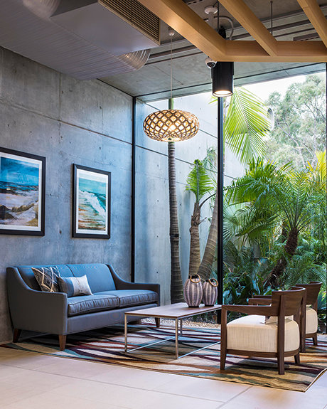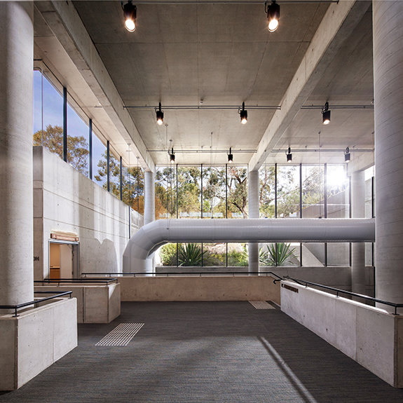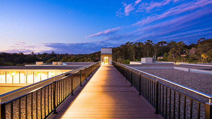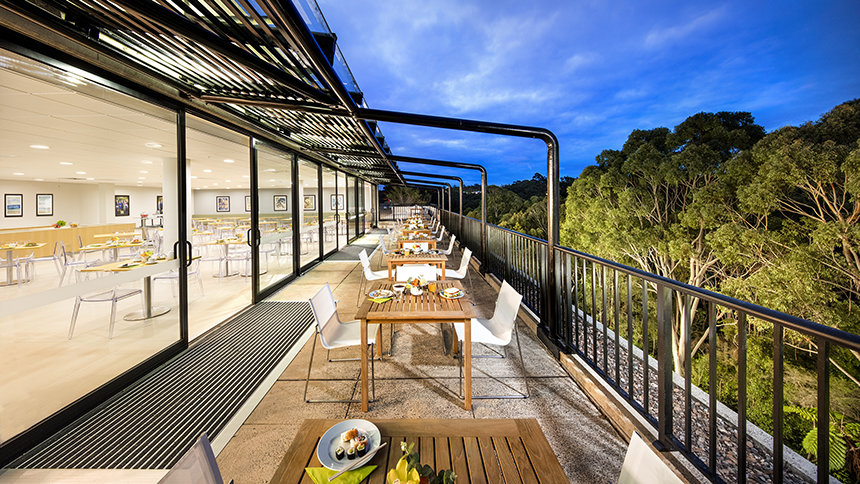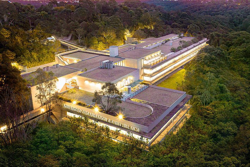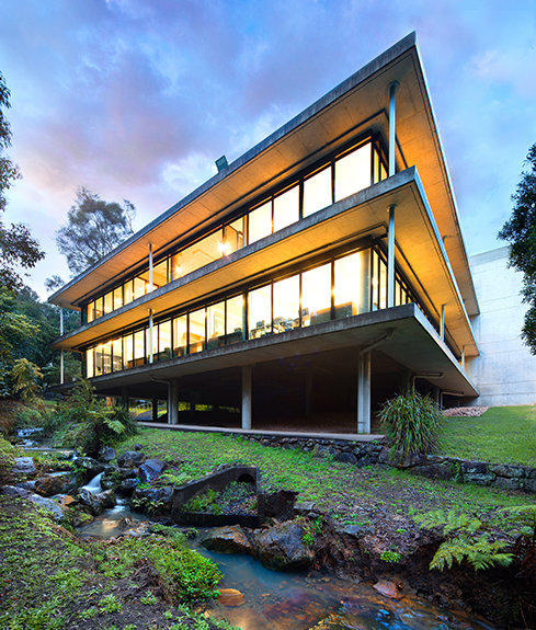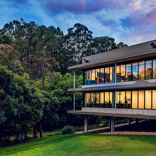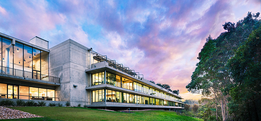 Den ultramoderne strukturen presenterer en minimalistisk stil med fleretasjes glassvinduer sammen med et slående betonglandskap. Utenfor snor bekken Blue Gum Creek seg gjennom 34 mål med eukalyptusskog, som en edens hage i hjertet av Sydney og omegn.