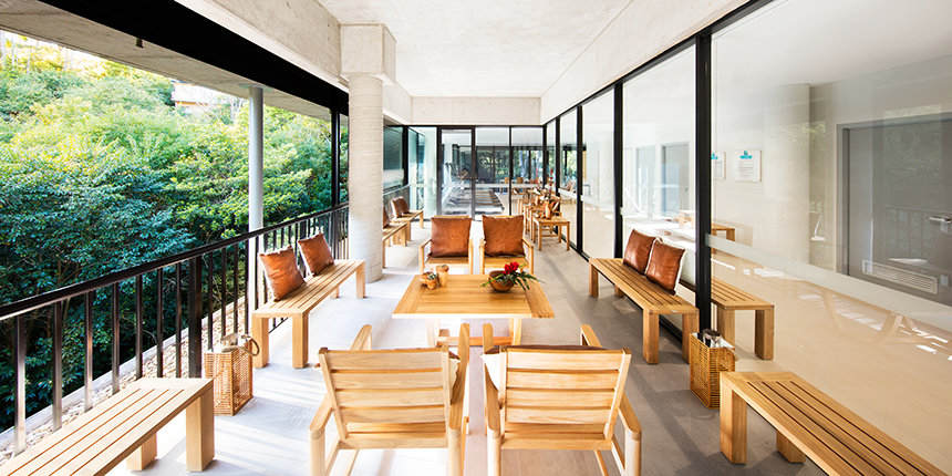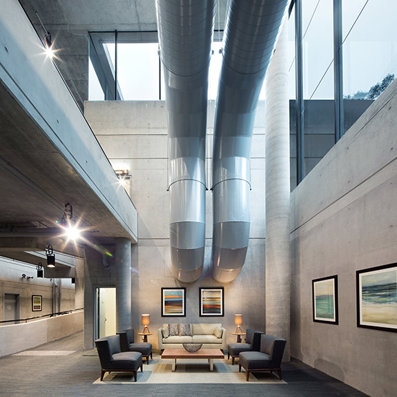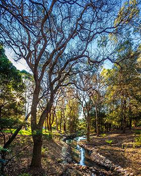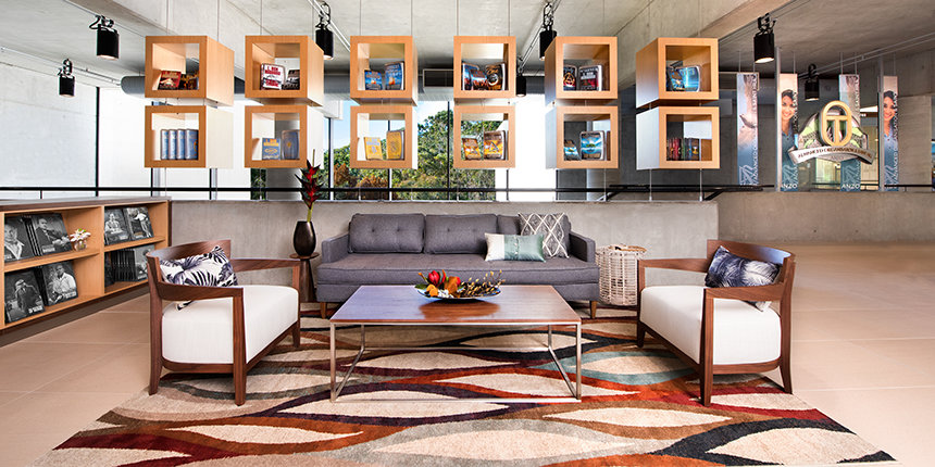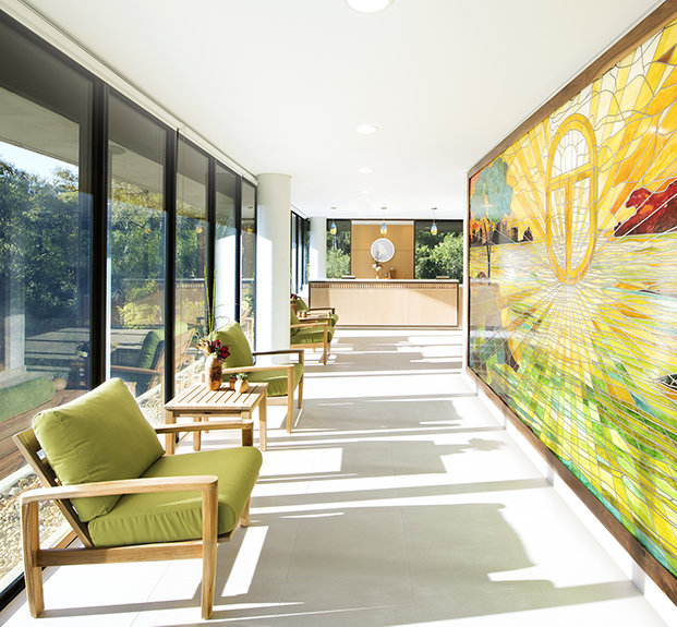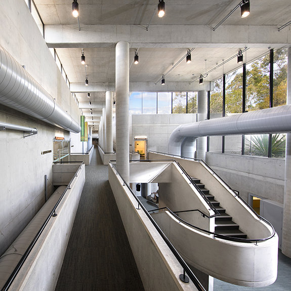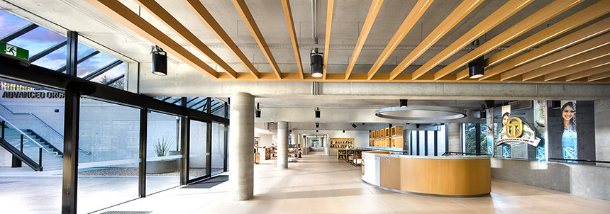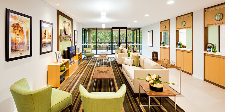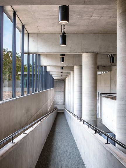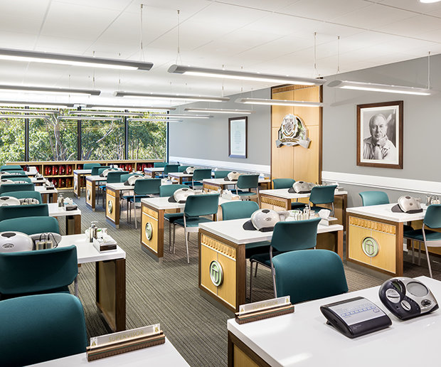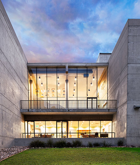Den ultramoderne strukturen presenterer en minimalistisk stil med fleretasjes glassvinduer sammen med et slående betonglandskap. Utenfor snor bekken Blue Gum Creek seg gjennom 34 mål med eukalyptusskog, som en edens hage i hjertet av Sydney og omegn.