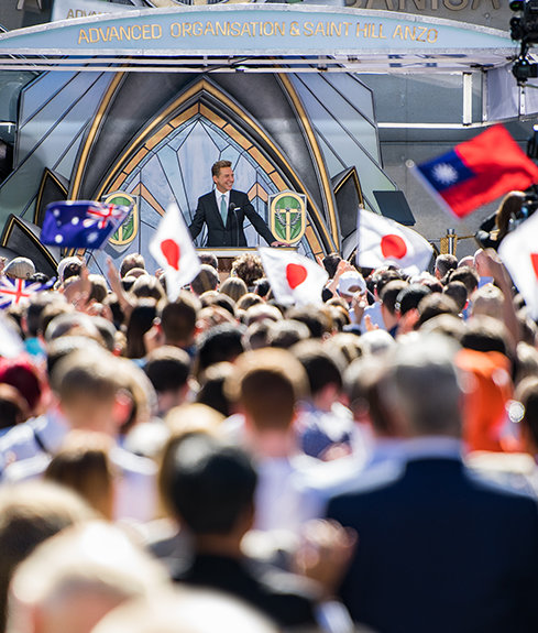 «I dag markerer vi enda en monumental fullføring med en innvielse som er absolutt uten sidestykke», sa David Miscavige, styreformannen i Religious Technology Center og kirkelig leder av Scientology religionen. «For hvor ellers kan du innvie en ny Avansert Scientology organisasjon som tar pusten fra deg som denne? Eller for den saks skyld, hvor ellers kan du tilby den tidløse friheten av evigheten til den mest befolkede sonen på jorden? Vel, det er nøyaktig hva vi innvier i dag mens vi klipper båndet til den nye Ideelle Avanserte organisasjonen for Australasia!»