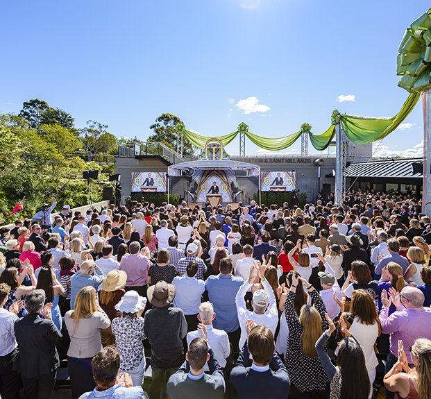 Det praktfulle nye åndelige hjemmet for Scientology Kirken som ligger bare ti minutter fra Sydneys sentrum, men likevel en verden unna midt i 3600 mål aboriginsk skog i Lane Cove nasjonalpark, ble innviet for tusenvis av mennesker søndag den 4. september.