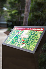 Den ultramoderne strukturen presenterer en minimalistisk stil med fleretasjes glassvinduer sammen med et slående betonglandskap. Utenfor snor bekken Blue Gum Creek seg gjennom 34 mål med eukalyptusskog, som en edens hage i hjertet av Sydney og omegn.