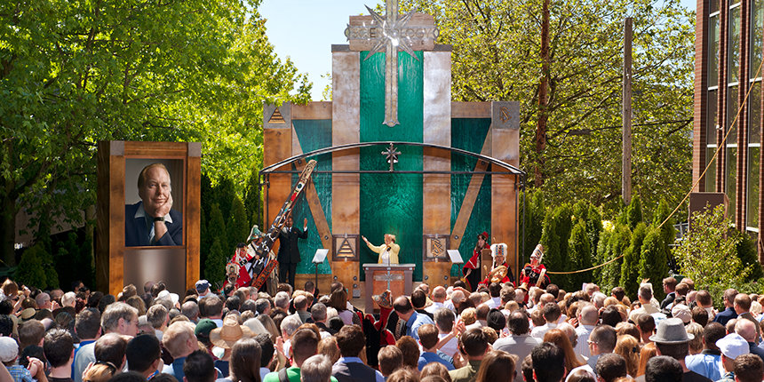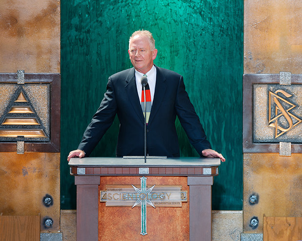 David Miscavige, styreformannen i Religious Technology Center og Scientology-religionens kirkelige leder, ledet seremonien og anerkjente de scientologene som stod i spissen for bestrebelsene på å bygge den nye kirken.