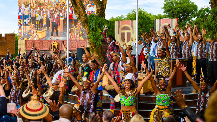Til ære for den ekstraordinære fremtiden kom et kor med hundrevis av sangere kledd i tradisjonell afrikansk klesdrakt og fylte slottet fra plattform til balustrade og danset og sang «Forandringens vind» – en original sang skrevet spesielt for denne anledningen. Forestillingen, inspirert av L. Ron Hubbard og hans drøm om ubegrenset åndelig frihet for Afrika, erobret hjertene til alle tilstedeværende. Dignitarer som representerte det sørafrikanske politiet og myndighetene sluttet seg til koret og sammen hyllet de den historiske begivenheten som en «ny oppvåkning for vårt kjære Afrika».