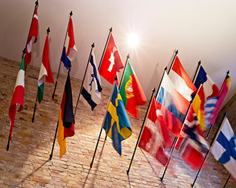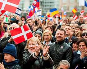Flaggene til mer enn 30 europeiske land vaiet i den danske vinterbrisen.