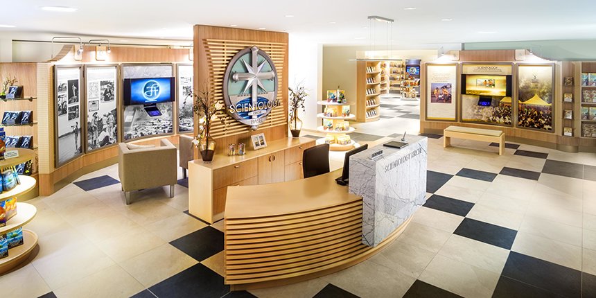 Informasjonssenteret gir også et detaljert overblikk over de mange humanitære programmene som kirken sponser. Disse inkluderer et verdensomspennende initiativ for å undervise i menneskerettighetene; et vidtrekkende program for narkotikautdannelse og -forebygging og rehabilitering av stoffmisbrukere; et globalt nettverk av sentre for lese-/skriveferdigheter og læring; og Scientologys Frivillige prester-programmet, nå den største uavhengige nødhjelpsgruppen på jorden.