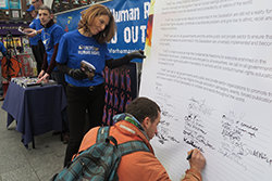 Amina Mustafa Keogh beskrev en landsomfattende bevegelse for menneskerettigheter som ble dannet i de siste 12 månedene under banneret til United for Human Rights: «Hver gutt og jente i vårt undervisningsprogram ’Count Us In’ får sitt eget eksemplar av deres hefter om menneskerettigheter, kombinert med vår Anti-Bullying-workshop. Faktisk bruker 48 av våre frivillige programmet, fra Cork til Limerick og fra Galway til Dublin. Utstyrt med undervisningspakker holder de seminarer og foredrag og sår menneskerettighetenes frø hvor enn de går. Og med nesten 3000 studenter som har fullført programmet bygger vi en voksende hærskare av menneskerettigheter.»