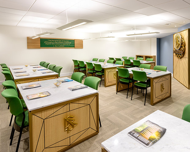 Den nye kirken og samfunnssenteret tilbyr alle besøkende en introduksjon til Dianetics og Scientology, som begynner med informasjonssenteret. Utstillingen, som inneholder mer enn 500 filmer, viser Scientology religionens fundamentale trossetninger og praksiser samt grunnleggeren L. Ron Hubbards liv og arv.