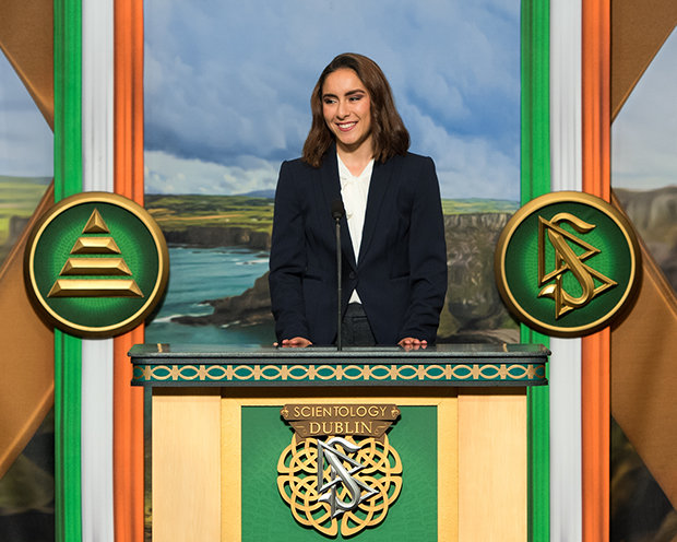 «Så til det evige transcenderende Irland: Du holdt litteraturen i live i 500 år. Du bygde Amerika, og du muligens til og med oppdaget det. Du lærte menneskeheten likestilling og hvordan å leve med verdighet i dens fravær. Og du lærte oss at det ikke finnes noen vare så dyrebar som skjønnhet, som er hva du står for. Hvilket er grunnen til at vi er stolte av å stå ved din side, idet vi innvier denne nye Scientology Kirken og Samfunnssenteret i Dublin.»