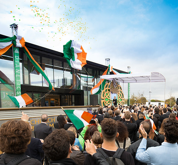 Og slik gikk det til at på en praktfull oktober-ettermiddag, nøyaktig 12 måneder etter innvielsen av et Nasjonalt kontor på Dublins ikoniske Merrion Square, klippet Scientology Kirken båndet for en ny Kirke og Samfunnssenter. Denne fasiliteten er viet til å tilby programmer støttet av Scientology Kirken og skaffer til veie et sentralt sted for lokale aktiviteter og arrangementer for å styrke lokalsamfunn i Dublin og hele Irland.