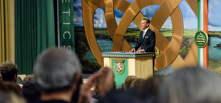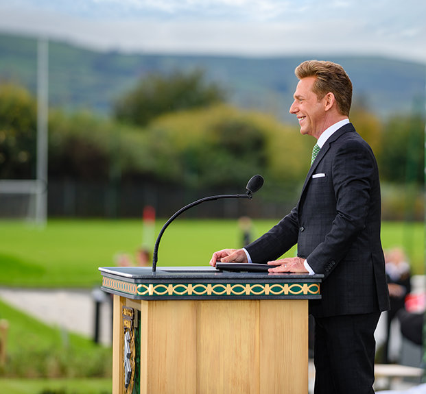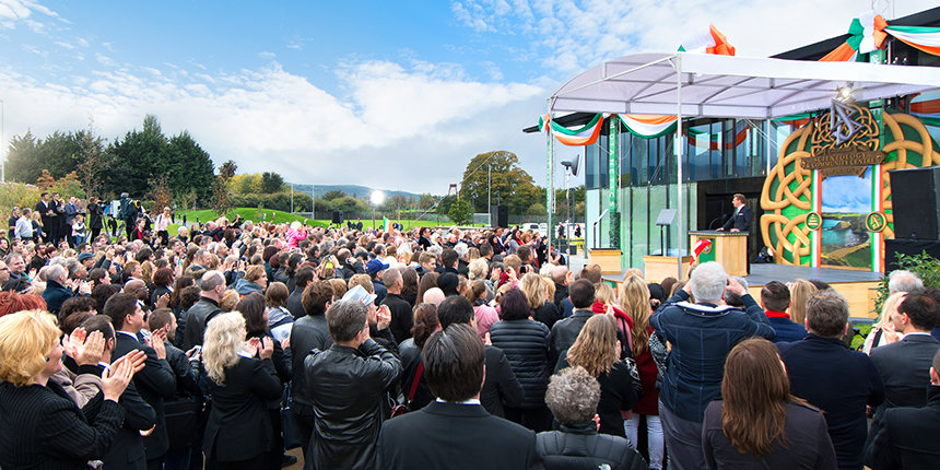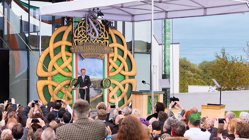 «I dag oppfyller vi et løfte om å hedre et land som vår grunnlegger L. Ron Hubbard høyt elsket, og et folk som han beskrev som vidunderlig varmt, selv om været av og til ikke er det», sa David Miscavige, kirkelig leder av Scientology religionen, til tilhørerne. «Og hvis det ikke sier det, så tillat meg å sitere fra deres egen William Butler Yeats: ’Mennesket lever og dør mange ganger mellom dets evigheter ... og gamle Irland kjente det hele.’»