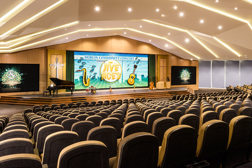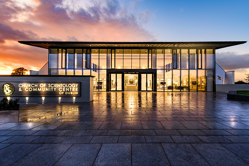 Scientology Kirken og Samfunnssenteret, som ligger på et 28 mål stort område i hjertet av South Dublin, fortsetter i samme ånd og er utelukkende utformet til å tjene som et hjem for hele lokalsamfunnet og et møtested for felles innsats. Det toppmoderne auditoriet har 1050 sitteplasser og er fullt utstyrt til å holde mange ulike lokale eventer: fra veldedighetseventer, konserter, litterære kvelder og sammenkomster for nabolaget, til undervisningsseminarer, konferanser og kommunale funksjoner. Senterets idrettsbane er like godt utstyrt for både gælisk fotball, hurling, rugby og fotball. Fasilitetene som også omfatter møtelokaler og en kafé med full service, er tilgjengelige til bruk for samfunns- og veldedige organisasjoner inklusive lokale klubber, skoler og ungdomsorganisasjoner.