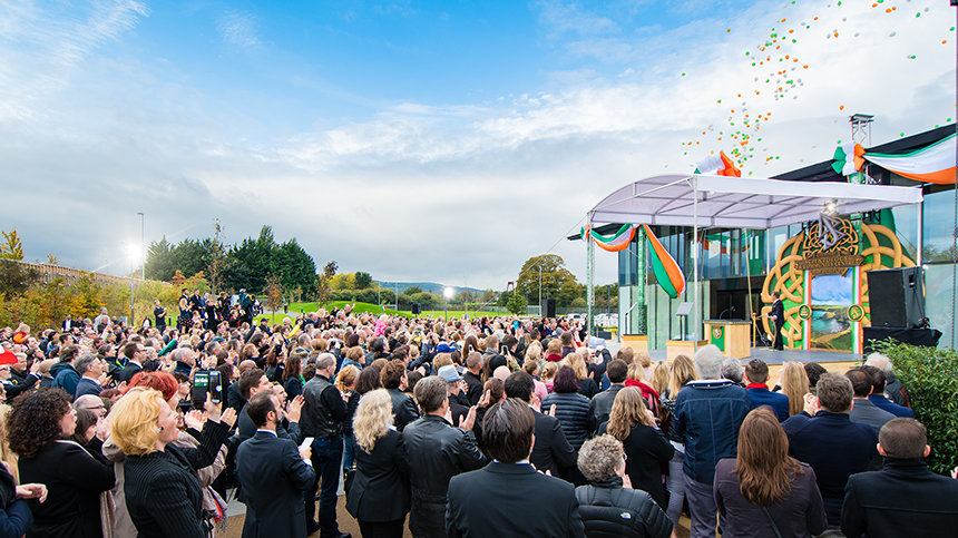 «Pádraig Pearse, en av våre fremste politiske ledere og poeter, lagde denne vendingen: Tír gan teanga, tír gan anam. ’Et land uten et språk, er et land uten sjel.’ Så selv om dere kanskje ikke er klar over det, og mens det kanskje ikke har vært deres eneste hensikt, så hjelper det dere har oppnådd i dag, faktisk og praktisk talt, til med å holde Irlands sjel i live.»