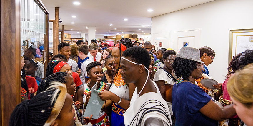 Innvielsesseremonien hadde et anstrøk av kreativitet og levende uttrykk, ledet av de magiske lydene av Djembe-trommer blandet med tradisjonelle dansere og melodiene til et lokalt kor. Festivitetene utviklet seg snart til et kor av dignitarer fra hele Johannesburg og Gauteng – som ønsket kirken velkommen og forutsa en heldig fremtidig etter at det gigantiske røde båndet ble klippet.