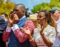 Så, sent i april, i Miamis sørøstlige svale bris, ble innvielsesfeiringen rocket til sprudlende høy stemning med en salsarytme som så avgjort var «Miami Nice». Festlighetene smeltet den latinamerikanske musikken og danserytmene sammen med humanitære helter, og det hele var synkronisert for å gi tilbake til denne frihetens by.