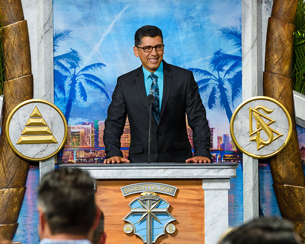 David Miscavige, styreformannen i Religious Technology Center og Scientology-religionens kirkelige leder, avsluttet sin innvielsestale for Miamis nye Scientology Kirke ved å si: