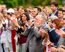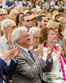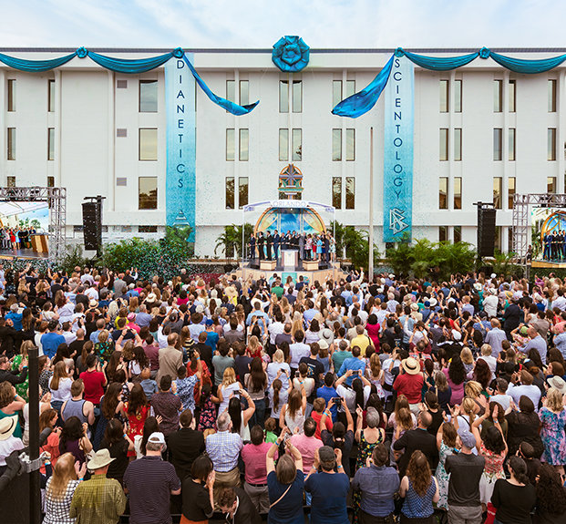 Og bare noen minutter fra Orlandos temapark-aveny, International Drive, vil du se den nyeste «skinnende stjernen» som allerede glitrer i Kirkens voksende interstellare galakse. Den vidstrakte fasiliteten ligger på nesten 16 mål midt i Floridas største innlandsby ved bredden av innsjøen Lake Ellenor. På dette sjarmerende stedet, hvor latter og fantasi er tidløst, møttes en skare av over 2000 scientologer og venner under Floridas formiddagssol lørdag den 12. mai for å feire innvielsen av en ny Scientology Kirke.