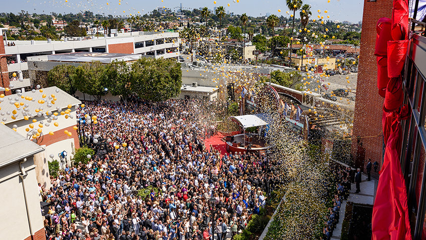 Den siste gjestetaleren var Kevin James, direktøren for Los Angeles City Film- og tv-kontor. «Fra perspektivet trygghet for byen og publikum beundrer jeg engasjementet deres med å være en flott partner på grasrotnivået. Og jeg beundrer også den profesjonelle holdningen og villigheten deres som dere viser i samarbeidet med oss, Los Angeles by. Dere er godt forberedt på å være en partner her i byen. Og det betyr mye. Men med dette nye filmstudioet vi feirer i dag, vil jeg si at dere tar partnerskapet til et helt nytt nivå!»