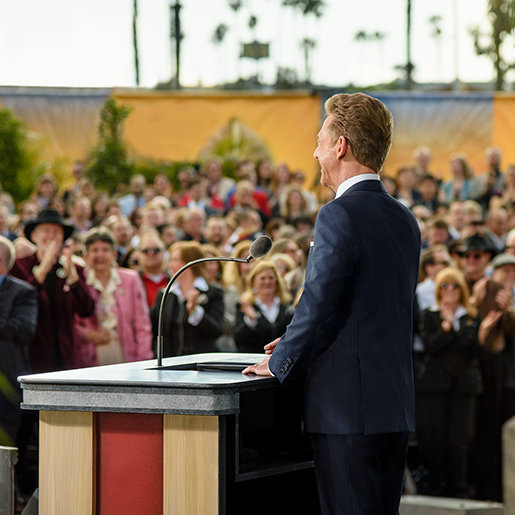 En feststemt stemning av prestasjoner, beveget av en lett Stillehavsbris, fylte begivenheten. Lederen av innvielsen var mr. David Miscavige, den kirkelige lederen av religionen Scientology, som fortalte publikum at bølgen de hadde ventet på nå var i ferd med å bryte: «En perfekt bølge. En endeløs bølge. En bølge som hvem som helst kan ri på til høyere platåer av evne og åndelig udødelighet. Men, selvfølgelig, ikke alle vet hvor strandlinjen ender og ens livstids reise begynner – som er hvor dere kommer inn med en invitasjon til frihet og en leksjon i hvordan å fange den bølgen og aldri bli den samme igjen.»