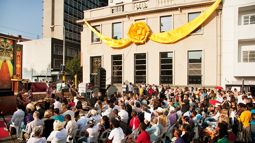 Senteret er plassert i nærheten av University of Witswatersrand (WITS) i Braamfontein-distriktet og betjener slik et rikt variert samfunn, hvis felles mål er uttrykt i distriktets motto: «Stedet hvor folk hever seg til storhet.» I egenskap av konferansier lovte senterets leder, Edmund Dladlu, å samarbeide med lokalsamfunnet for å virkeliggjøre det mottoet.