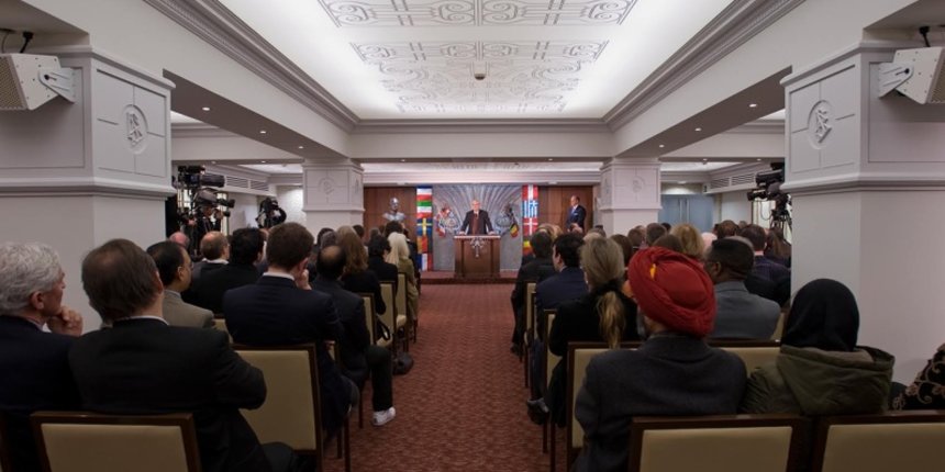 Fremtredende gjestetalere som deltok i innvielsen omfattet Hugo Coveliers, senator i det belgiske parlamentet, professor Abolfazl Beheshti, professor i internasjonale relasjoner og energi-økonomi ved universitetet i Lille, Frankrike, Juan Ferreiro, visegeneraldirektør for trossamfunn i det spanske justisministerium, Katalin Szomor, sakkyndig medlem av narkotikakommisjonen fra det ungarske parlamentet og tidligere nasjonal koordinator i narkotikaspørsmål samt pastor, Christopher Vonck, rektor på fakultetet for sammenlignende religionsstudier ved universitetet i Antwerpen.
