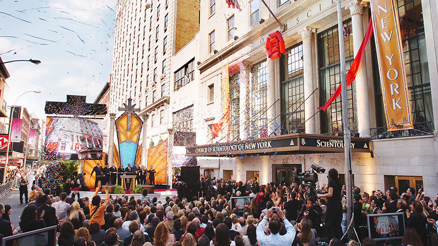 Scientology Kirken New York City, som ligger like ved Times Square, var en gave fra Den internasjonale assosiasjonen av scientologer til befolkningen i New York i anerkjennelse av deres mot og ånd da de stod overfor World Trade Center-katastrofen i 2001.
