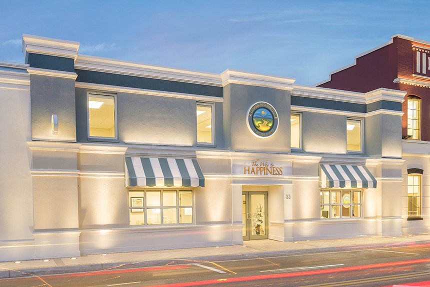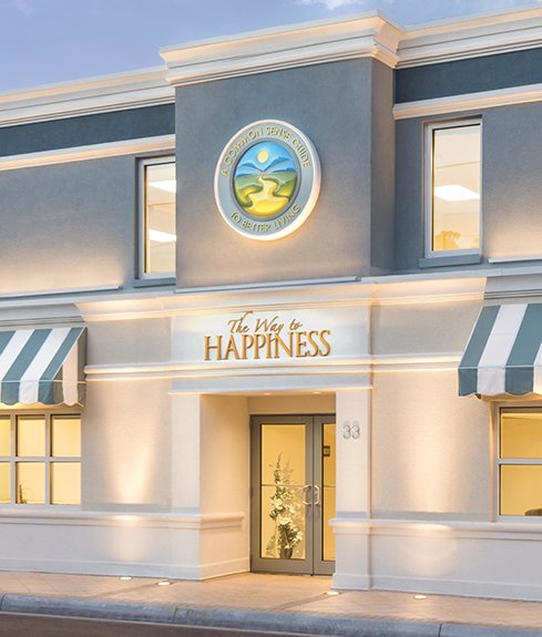 Clearwaters senter for Veien til lykke-stiftelsen omfatter kontorer for frivillige, informasjonsdisplayer som introduserer besøkende til hvert element av kampanjen, og et seminarrom hvor grupper og enkeltpersoner kan trene på å levere pensumet.