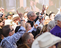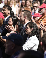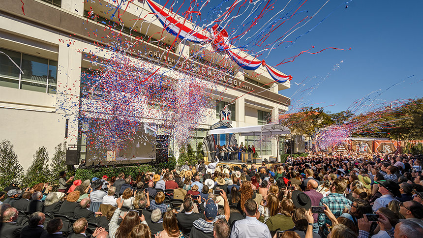 «Og i dag vil jeg innrømme litt Longhorns-stolthet over å feire enda et stort skritt i å holde vårt nabolag som det beste av de beste.» Hvoretter han ropte ut universitetsvendingen «Hook ’em Horns!» til den jublende tilskuerskaren.