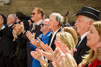 Og i dag, med denne innvielsen, feirer vi hjemkomsten av en større spiller til dette universitetsområdet. Så det jeg egentlig burde si er: ’Velkommen tilbake!’»
