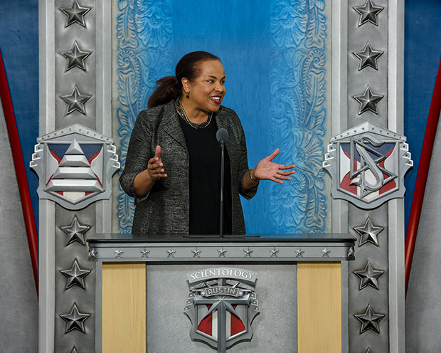«Dere er Texas-store og Texas-tøffe», sa mr. Miscavige. «Mens før det båndet daler på deres nye Scientology Kirke, er dette et øyeblikk til å huske hva som ble sagt for lenge siden av en av deres berømte texanere – at det var det beste landet han noensinne hadde sett, og at det fantes en umåtelig mengde land å temme. Vel, det er det atter en gang i dag. Bortsett fra at deres ’ekspertiseområde’ er menneskeånden, og dere temmer den ved å gjenopprette lykken, kjærligheten, oppriktigheten og vennligheten som folk ble skapt med.»