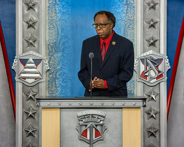 Mr. David Miscavige, religionen Scientologys kirkelige leder, ledet innvielsen og ønsket Scientologister fra delstaten Texas velkommen med en anerkjennelse av deres formål og stolthet.