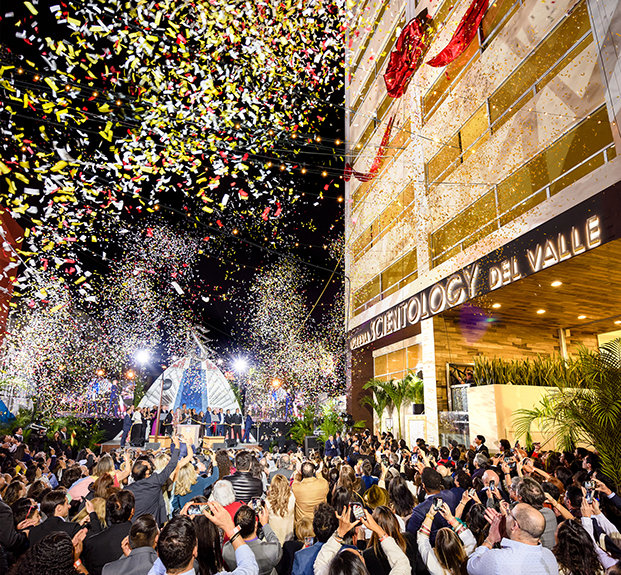 Fredag den 1. mars spilte mariachimusikere mens lyskastere danset på nattehimmelen over Colonia del Valle, et av Mexico Citys eldste og mest pulserende nabolag. I en synkronisert feiring dalte et innvielsesbånd, et fyrverkeri tentes og tusener jublet og ønsket den nye Scientology Kirken Del Valle velkommen.