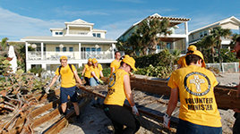 Mr. Miscavige fremhevet deretter Scientologys Frivillige Hjelpere (VM-er) som leverte personlig hjelp og støtte i tider med den største nød. I året som gikk leverte VM-er livsviktig hjelp og støtte fra halvkule til halvkule – i kjølvannet av en katastrofal orkan i Mexico, et jordskjelv i Japan, oversvømmelser i Kenya og Brasil, sykloner i Bangladesh, monsuner i Nepal og stormer i Tsjekkia.