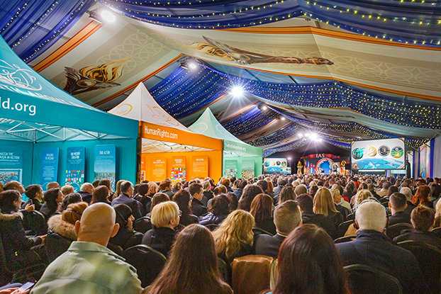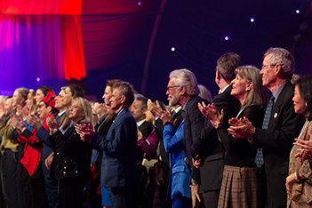 Mens den globale forsamlingen krysset det strålende rubinrøde teppet, frydet de seg i det enorme, store teltet og blåste nesten taket av da mr. Miscavige ankom på scenen til en buldrende jubel som varte i flere minutter. Det var ikke bare et uttrykk for beundring for Scientologys leder, men en anerkjennelse av hvor omfattende denne feiringen var.