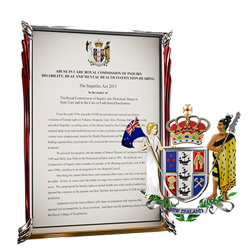 Den første er en historisk fortelling som begynte i 1976 i New Zealand, da CCHR avdekket tortur av barn med medikamenter og elektrosjokk i en statsdrevet psykiatrisk anstalt kjent som Lake Alice. Gjennom flere tiår med etterforskning sendte CCHR inn bevis på overgrep i mer enn 40 anstalter til New Zealands regjering. Da ingen påtaler eller ansvarlighet fulgte, trappet CCHR opp og sendte saken til De forente nasjoners komité mot tortur, som utstedte et offisielt direktiv til New Zealand for å undersøke. Regjeringen beordret deretter en kongelig kommisjon til å undersøke hele omsorgssystemet i landet, mens CCHR ble utnevnt som en «kjernedeltaker» og leverte 28 000 sider med bevis og vitnet for kommisjonen.