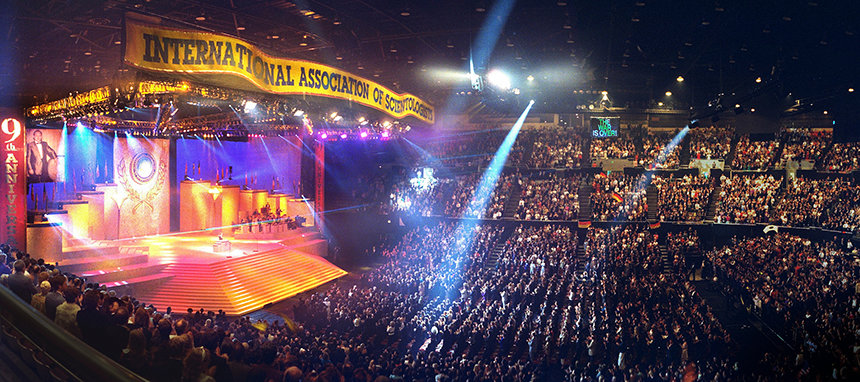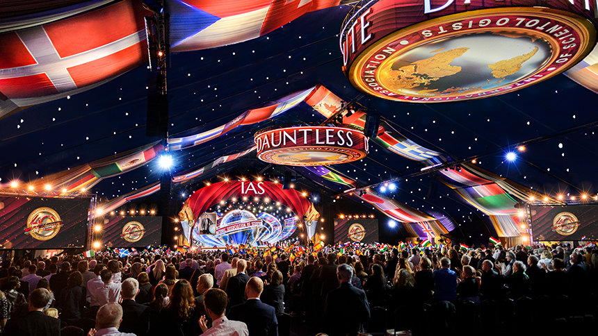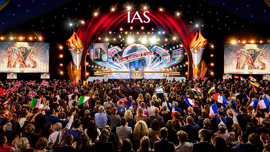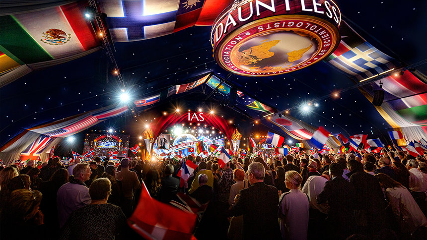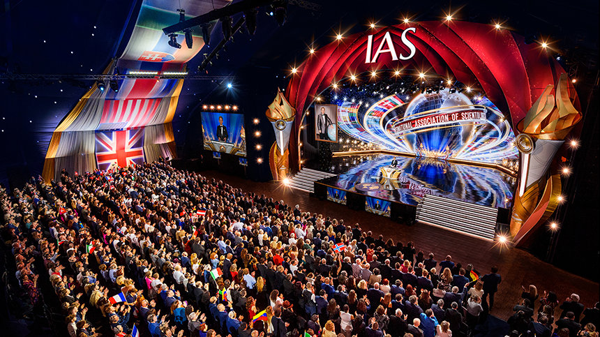 «I kveld markerer vi 40 år med IAS-historie», sa mr. Miscavige, «hvilket er ensbetydende med 4000 år i enhver annen historiebok.» Nærmere bestemt, ved IAS’ fødsel i 1984, omfattet Scientologys tilstedeværelse 39 nasjoner. Mens i dag presenterte mr. Miscavige det faktum at det er IAS-medlemmer i 184 land.