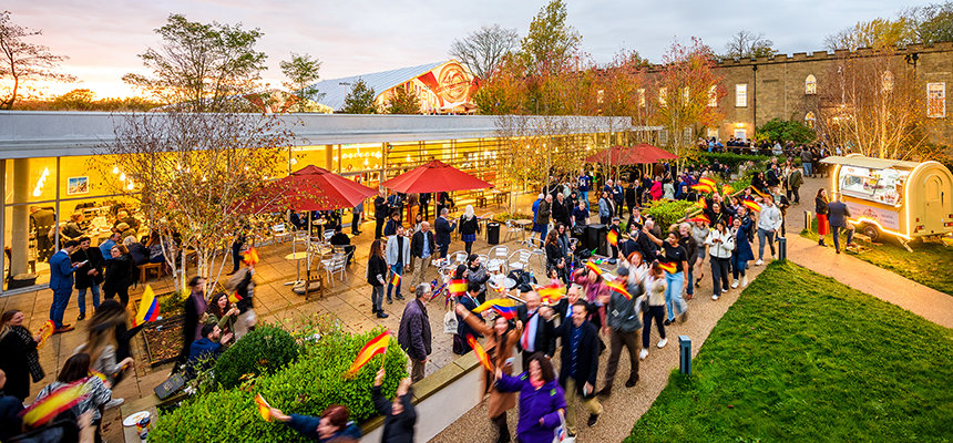 Det hele begynner på denne friske høstkvelden når de muntre tonene fra skotske sekkepiper skjærer gjennom luften mens klapringen av hestesko går i ett med klikkene fra høyhælte sko, og den rungende rytmen av et trommekorps gir gjenlyd fra slottstårnene.