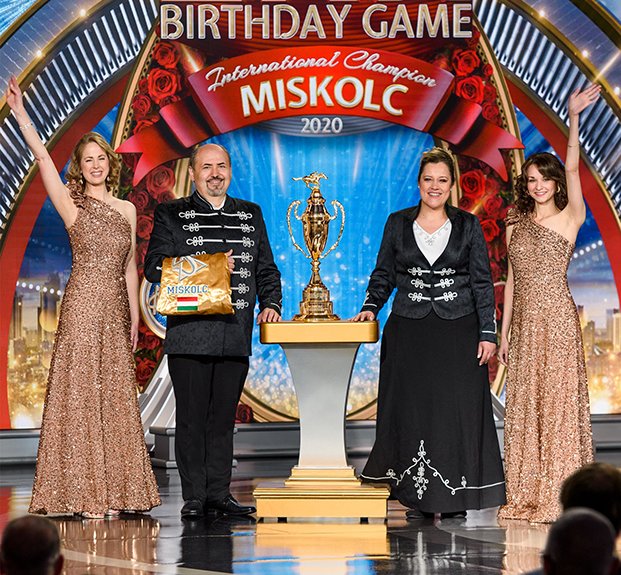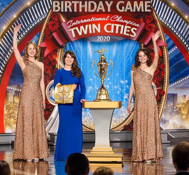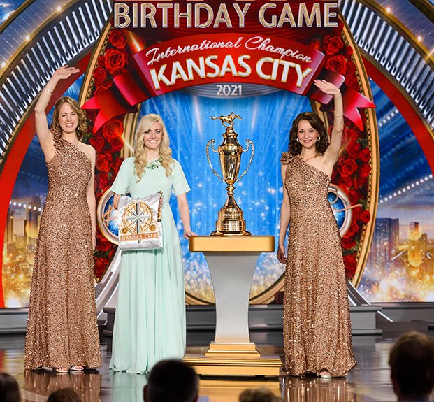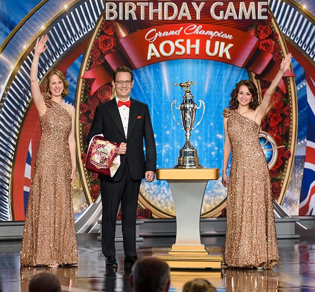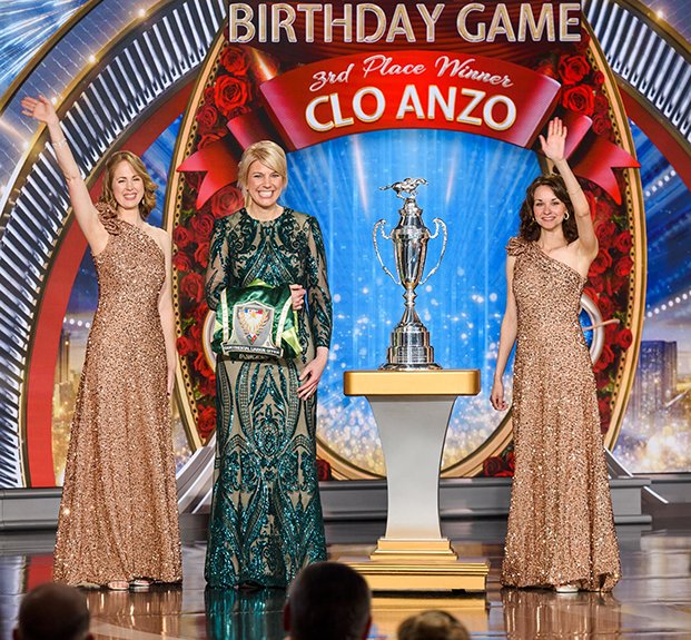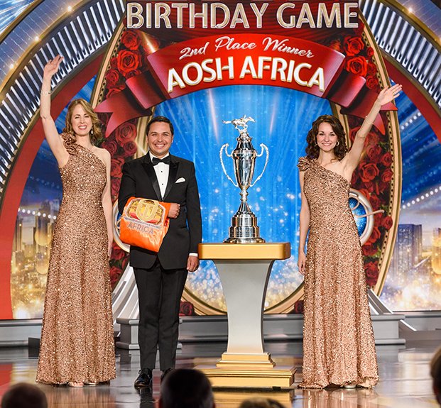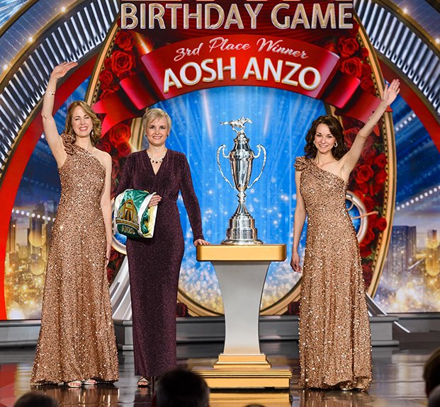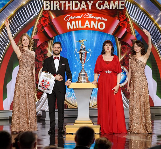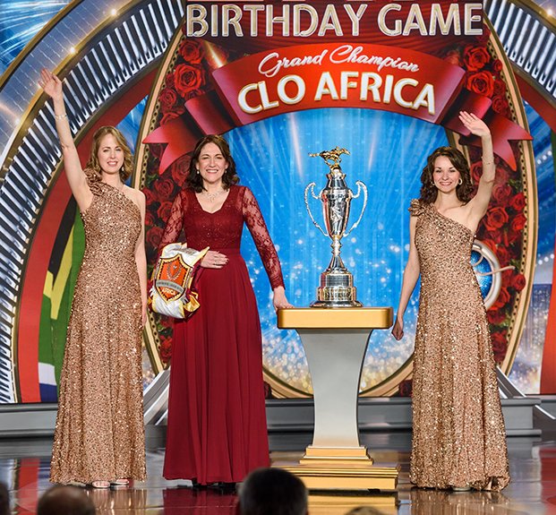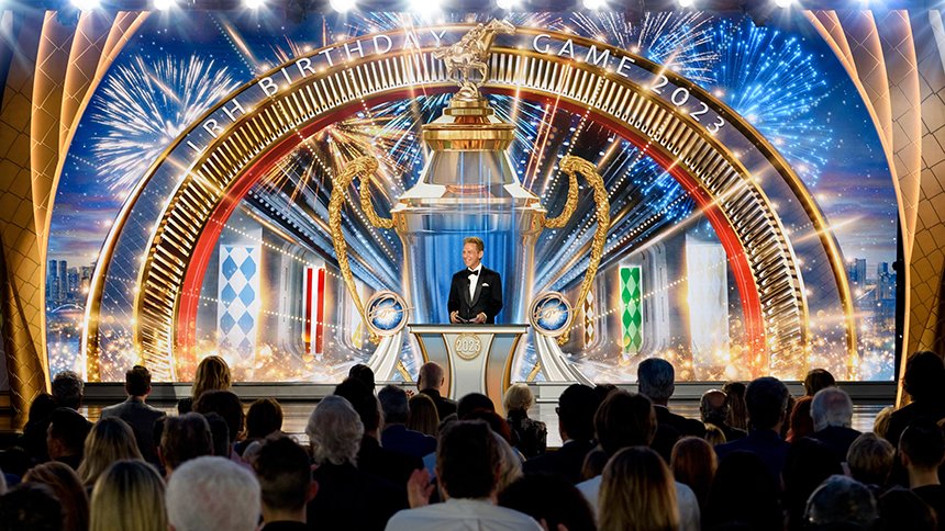 Deretter kom øyeblikket til å kunngjøre vinnerne av LRHs Fødselsdagsspill. Scenen ble forvandlet til en roseinnrammet vinnersirkel, komplett med glitrende lys, jockeydrakter og skinnende trofeer. Fødselsdagsspillet fortsetter tradisjonen med å hedre L. Ron Hubbard med gaven av ekspansjon i hver eneste Scientology Kirke.