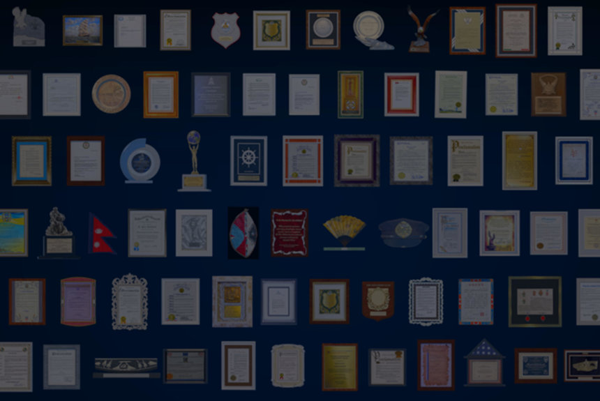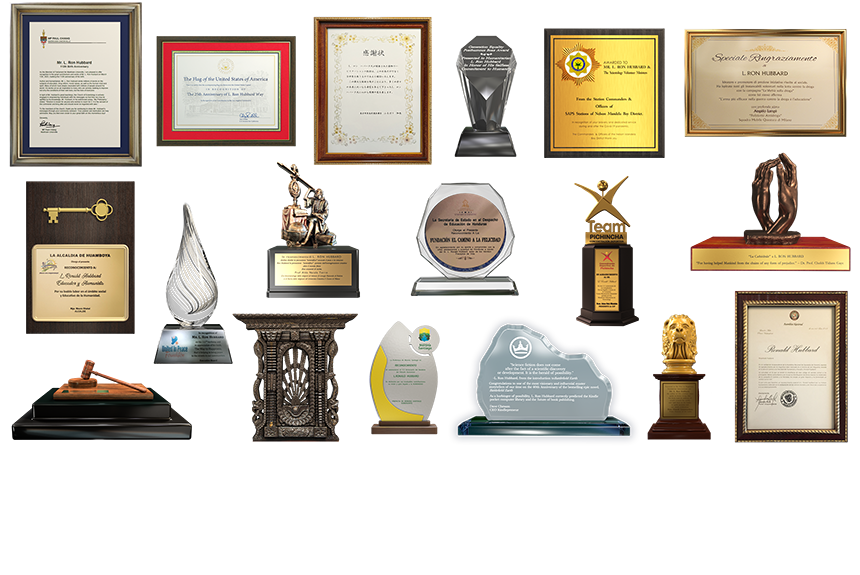Mr. Miscavige presenterte deretter en kaskade av utmerkelser skjenket L. Ron Hubbard i anerkjennelse av hans fødselsdag: