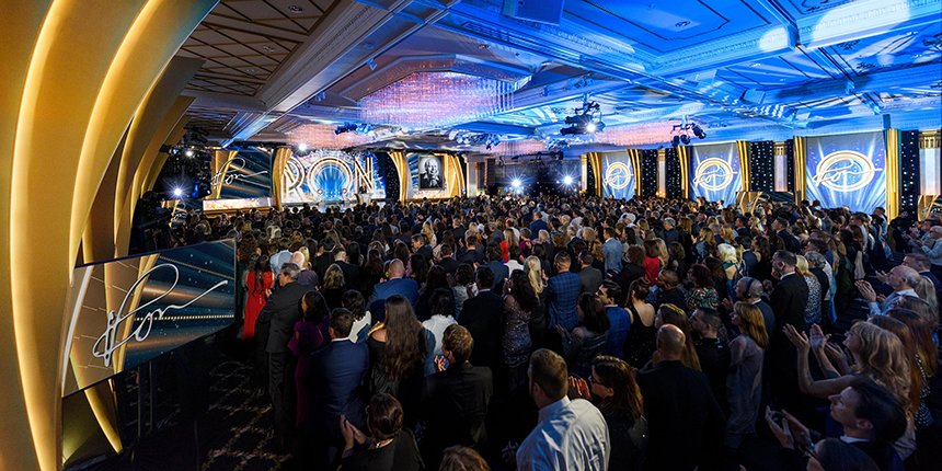 En kveld da Scientologister reiste fra det europeiske kontinentet, Storbritannia, hele Asia, Australia, New Zealand, Latin-Amerika og fra hele USA for å feire den ene mannen som bringer håp, hjelp og økt evne til millioner av mennesker: L. Ron Hubbard.