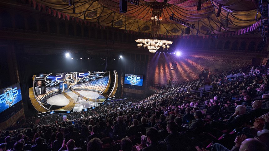 Slik var den umiskjennelige følelsen i det legendariske Shrine Auditorium i LA, hvor et tettpakket hus var vitne til et historisk øyeblikk for Scientology Kirken: en årlig nyttårsfeiring som markerte avslutningen av År Ett siden begynnelsen av Teknologiens gullalder fase II og 365 dager med enestående ekspansjon for religionen – både bokstavelig talt og åndelig.