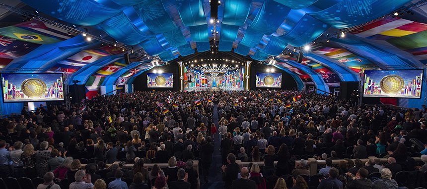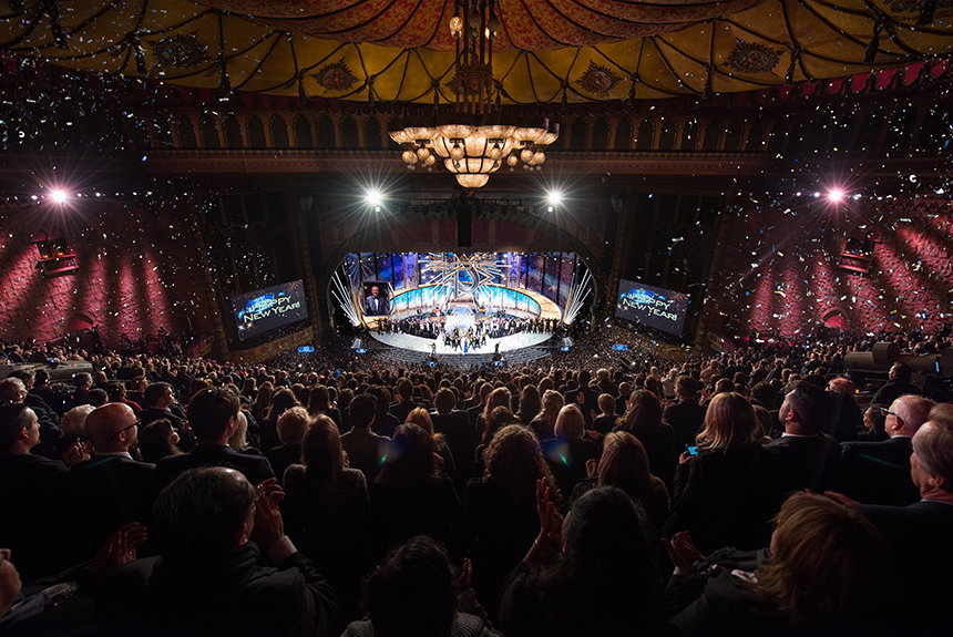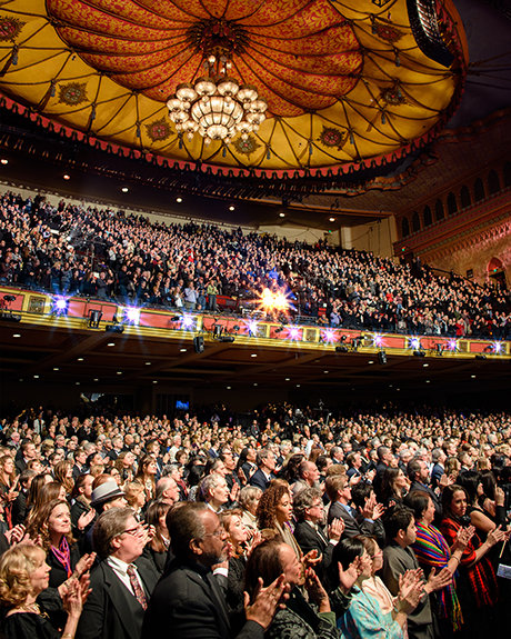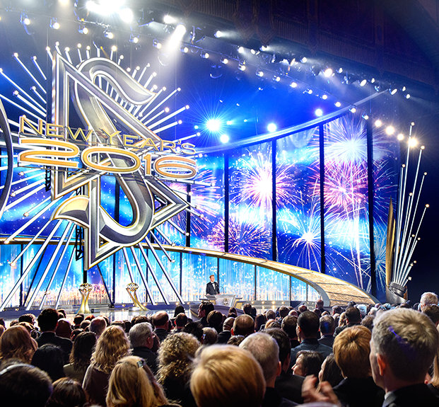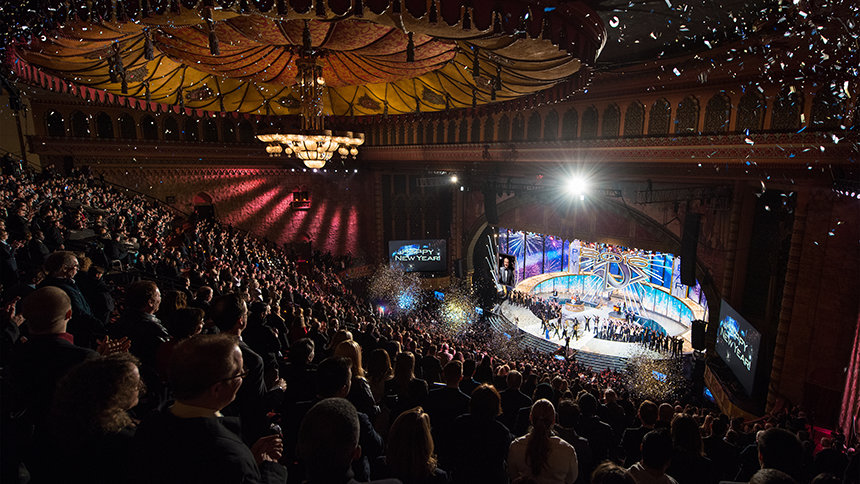 Tusenvis ser tilbake på 12 måneder med inspirerende prestasjoner og historisk vekst for religionen, under en festlig nyttårsfeiring i det legendariske Shrine Auditorium i Los Angeles.