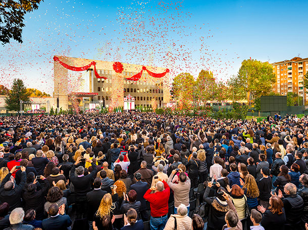 Den jublende menneskemengden så nyttårsfeiringen kulminere med Mr. Miscavige som introduserte verdens største Ideelle org, som ble innviet med pomp og prakt 31. oktober i den kulturelle hovedstaden Milano i Italia. På over 9000 m² på et 4000 m² stort området setter den nye ideelle orgen kronen på et år karakterisert av spektakulær vekst for Scientology Kirken, og legger til rette for enda et år med imponerende prestasjoner.